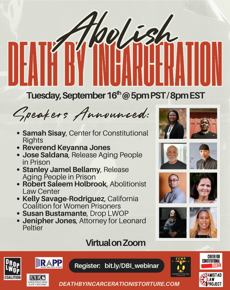 You can register for the Zoom virtual event here —>>> Webinar: Abolish Death by Incarceration
