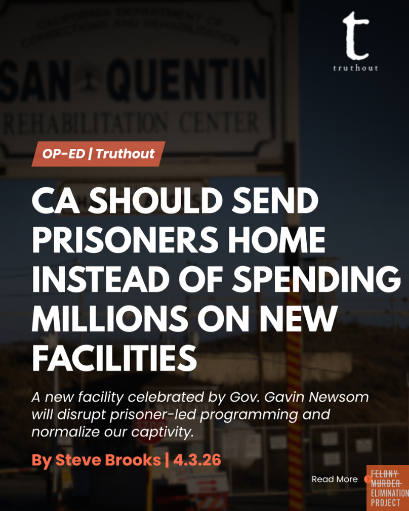 You can read the full piece, “CA Should Send Prisoners Home Instead of Spending Millions on New Facilities,” on the Truthout website. Truthout is a nonprofit news organization dedicated to providing independent reporting and commentary on a diverse range of social justice issues.