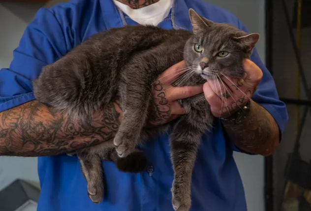 Cats can’t judge men and women on their wrongdoings (as any cat owner knows, they judge all humans the same). They cannot gauge the gravity of crime, and cannot judge the ink on people’s skin.