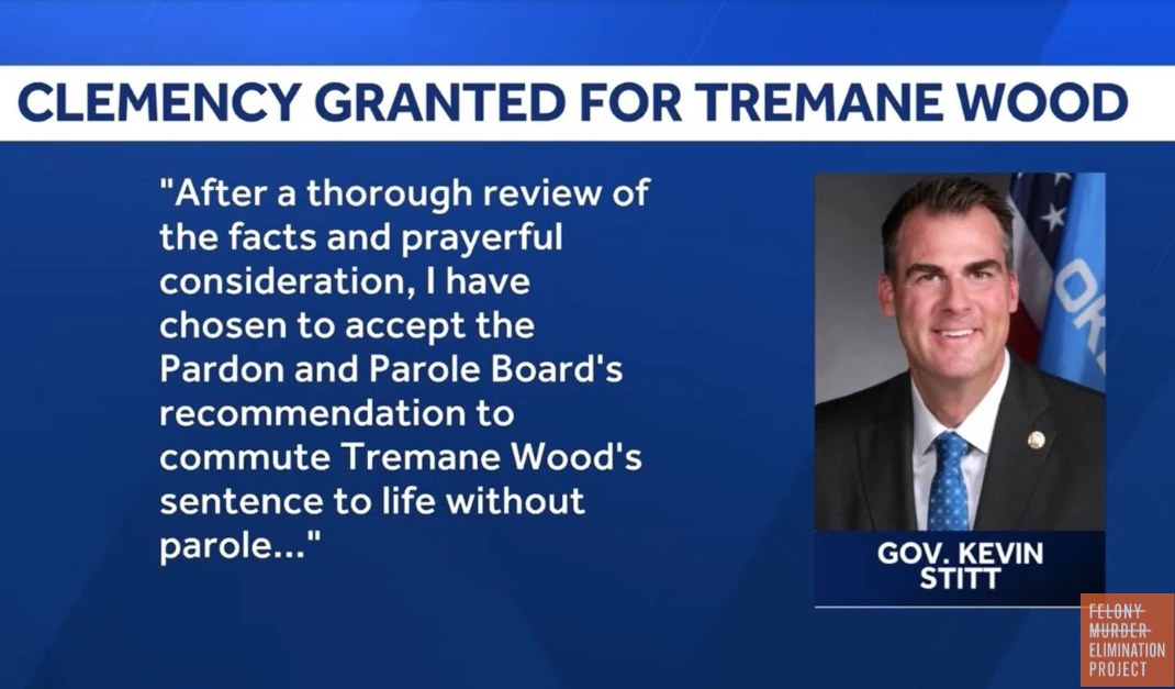 Felony Murder Elimination Project wishes to offer a statement on the Tremane Wood clemency decision today from Oklahoma Governor Kevin Stitt.