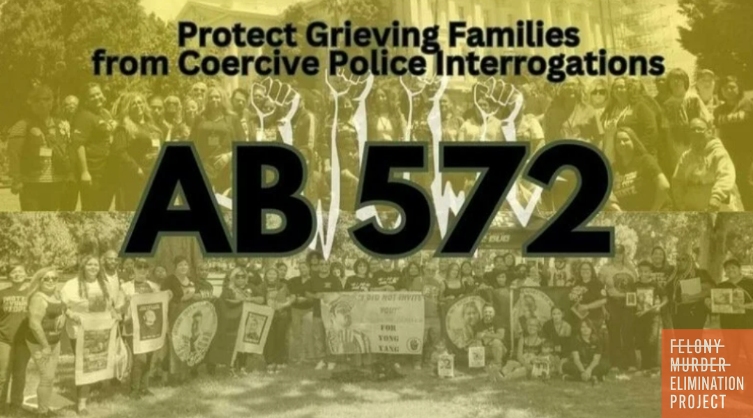 Felony Murder Elimination Project calls on our passionate advocates and supporters to help us tell Governor Newsom – Sign AB572 to protect grieving families from coercive police interrogations.