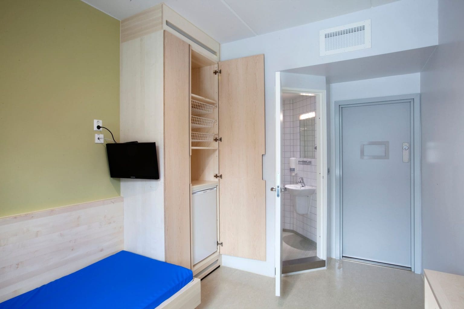 Halden is organized around the promotion of safety, well-being, and personal development, orchestrated to mimic life on the outside. Incarcerated individuals live in private rooms with doors and private bathrooms. Small groups share communal living spaces that include fully equipped kitchens. They are also encouraged to maintain a healthy measure of autonomy and personal agency in organizing their daily lives — they cook their own meals and are provided with an array of vocational training and educational programs, as well as various treatment options. They are given ample opportunities to maintain contact with family and friends, and they can all earn the award of brief periods of temporary leave from prison.